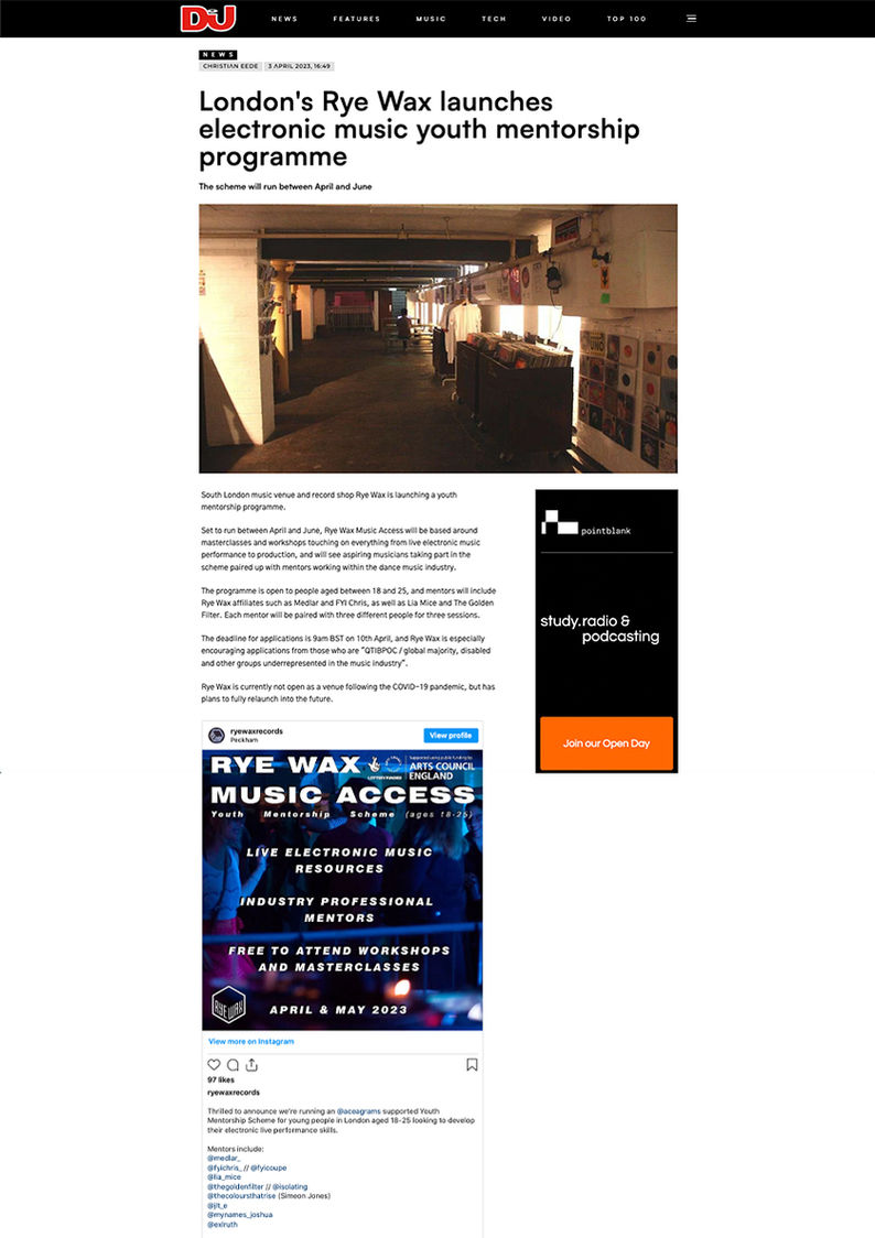 Rye Wax is an independent music venue and DJ Collective based in Peckham. We provide a home for creative communities, where accessibility and participation takes precedence over profit. We champion music and culture that is underrepresented or marginalised through providing a physical and digital space for these countercultural movements to flourish.